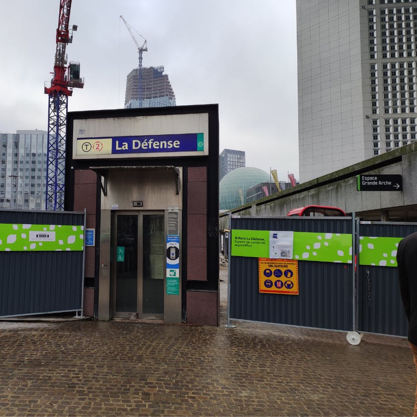Depuis la ligne 1, le RER A, les trains L et U et les bus, prendre l'ascenseur jusqu'au niveau du parvis. Avancer ensuite vers la Grande Arche, sur la droite du monument. Puis tourner à angle droit sur la droite, vers les "Collines de l'Arche". Descendre dans le patio via les monte-escaliers. Passer par les portes vitrées (ouvertes en semaine ; le week-end, appeler à l'interphone pour l'ouverture). Voir photos.